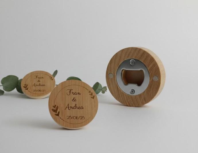 Transforma un simple detalle en un recuerdo duradero y útil. Nuestros abridores combinan la calidez del bambú con la funcionalidad de un abridor de botellas resistente Son la opción ideal para agradecer a vuestros invitados de una forma memorable y con un toque rústico-chic.