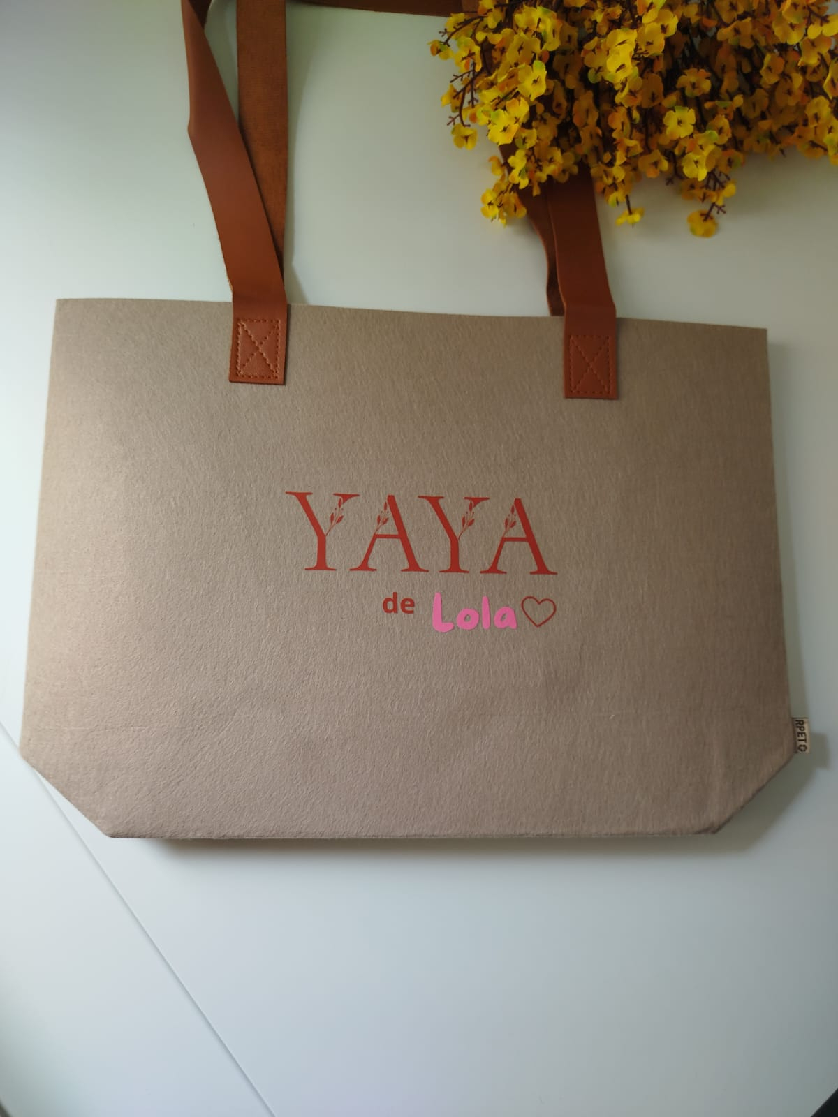 Bolso de fieltro personalizado "abuela de.." o "yaya de.." en DTF o vinilo textil.