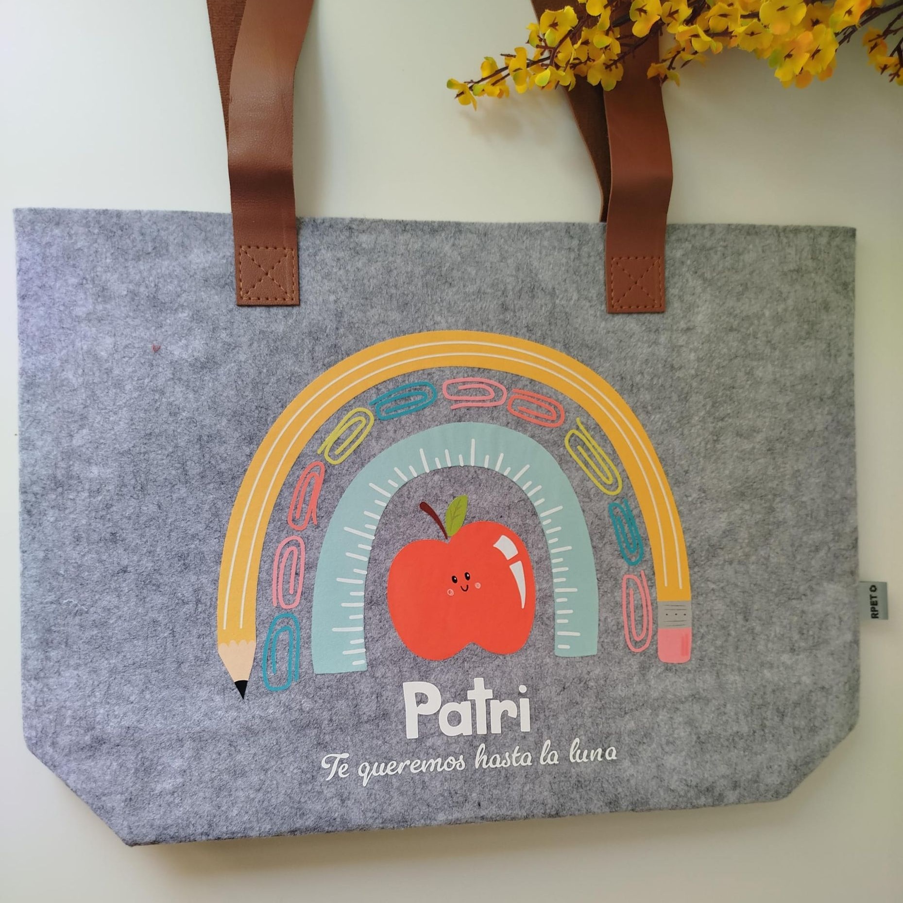 Bolso de fieltro personalizado "Nombre + frase" en DTF o vinilo textil.