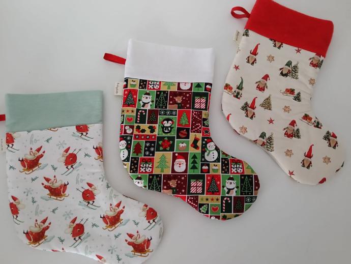Nuestras botas de navidad están son el regalo perfecto para sorprender a amigos o seres queridos, están confeccionadas a mano con bonitas telas navideñas y se pueden personalizar con el nombre para hacerlas aún más únicas.
