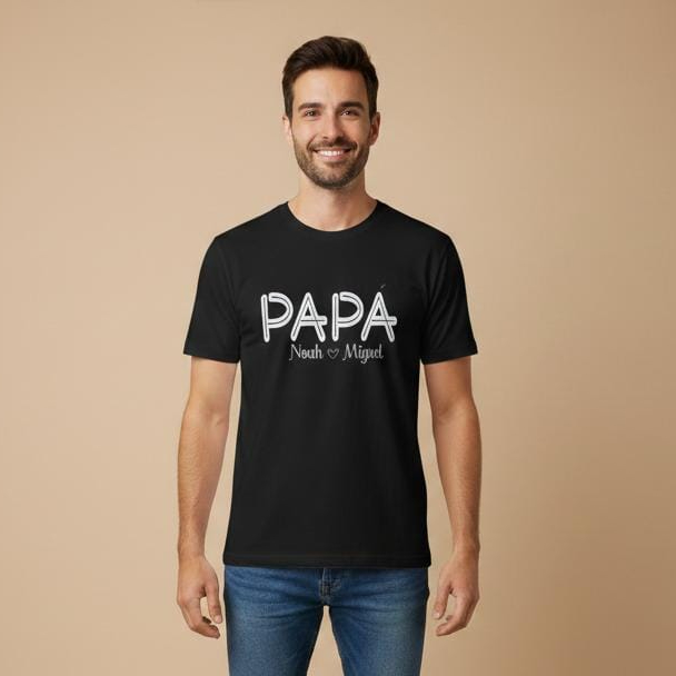 Camiseta personalizada de algodón e impresión con DTF o vinilo textil papá más nombres.