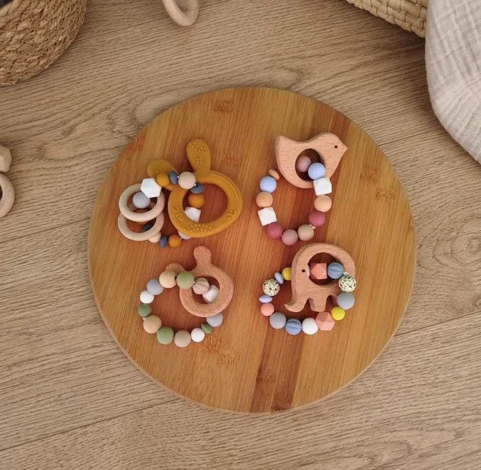 Mordedores en forma de pulsera elaborados con bolitas y figuras de silicona, libres de sustancias nocivas apto para bebés, Para aliviar la etapa de dentición de los bebés.