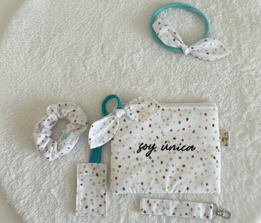 *Todos los artículos son elaborados con la tela confeti (foto).
