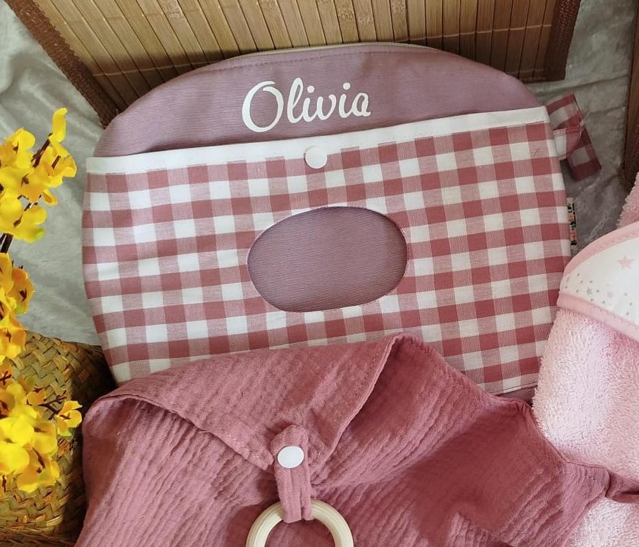 Hecha a mano, personalizable con nombre y la combinación de telas que más te guste (ver apartado de telas).