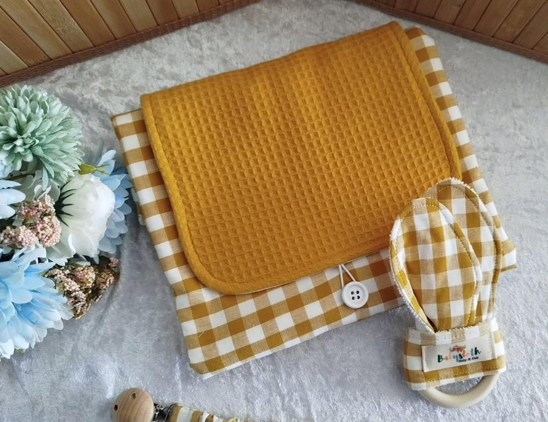 La higiene del bebé es importante, por eso, el cambiador portátil es uno de los accesorios que no puede faltar nunca en tú bolsa de paseo. No importa dónde estés, podrás cambiar a tú bebé de forma rápida y sencilla. Hecho a mano con la combinación de telas que más te guste. Además, puedes personalizarlo con el nombre para hacerlo aún más único y personal.