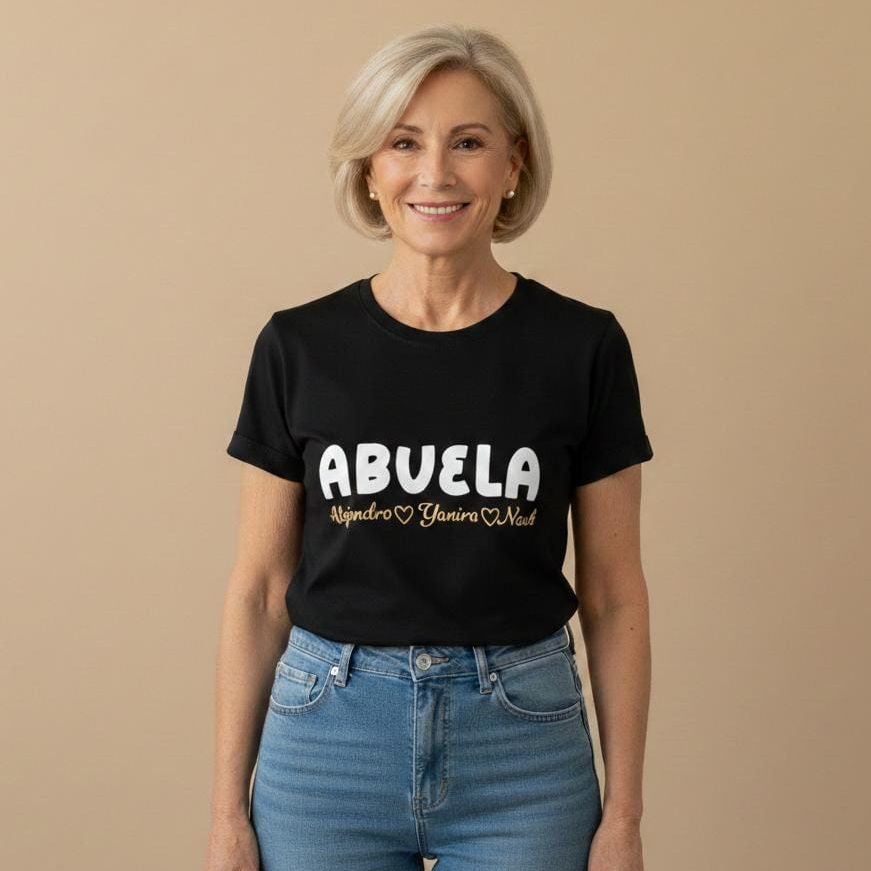 Camiseta personalizada de algodón e impresión con DTF o vinilo textil abuela más nombres.