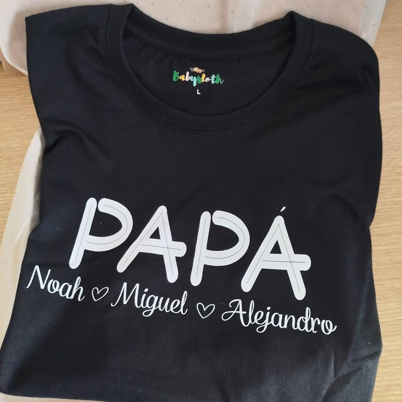 Camiseta personalizada de algodón e impresión con DTF o vinilo textil papá más nombres.