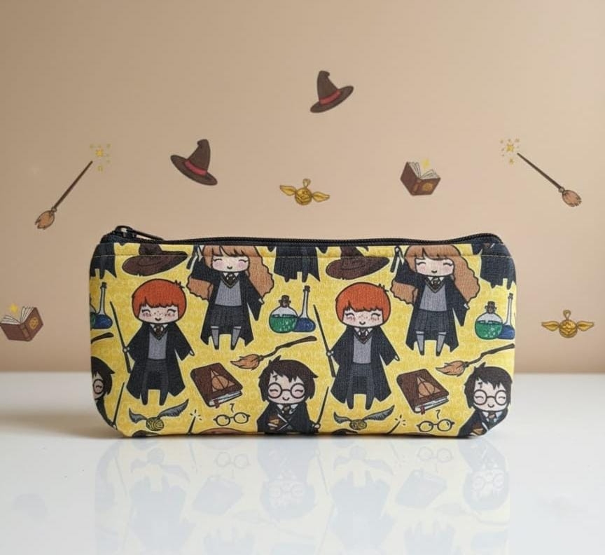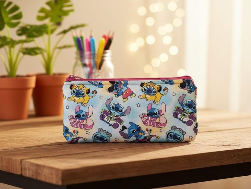 Estuche plano elaborado con tela de algodón y acolchado con foam. Gran capacidad interior. Cierre con cremallera.